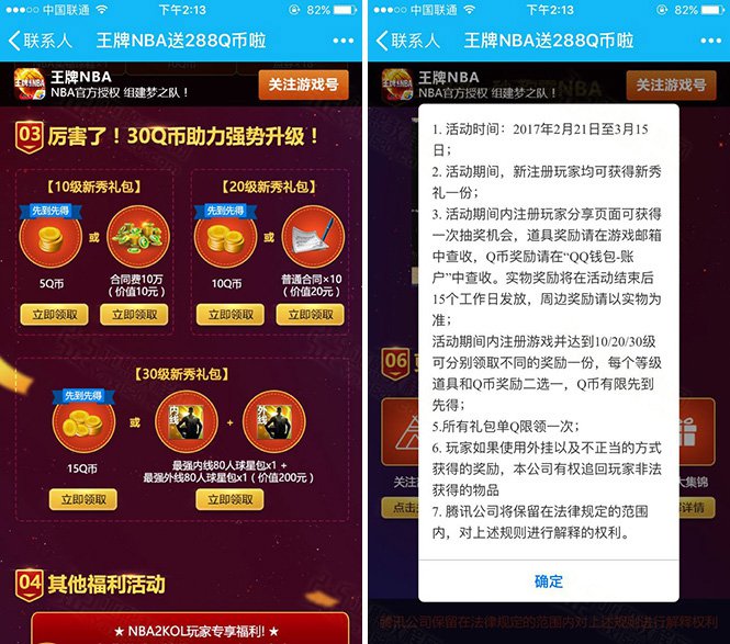手Q端王牌NBA新用户练级即可领取5~30Q币奖励 Q币有限