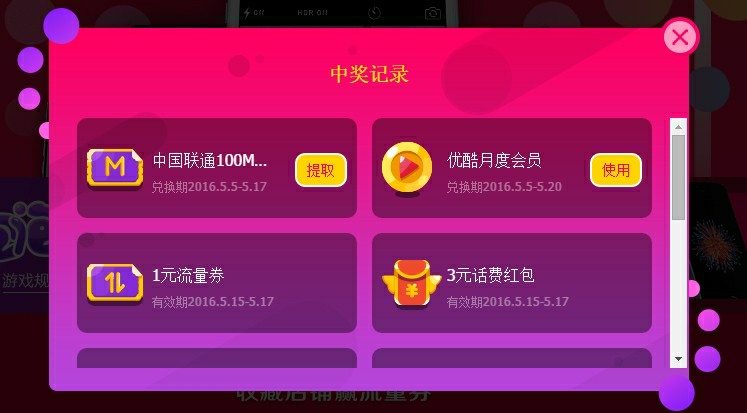 五、 优酷会员如何兑现:可以在中奖记录中点击该奖品后的“去使用”按钮,直接购买,购买需要支付0.01元,购买时间2016年5月5日至2016年5月20日;