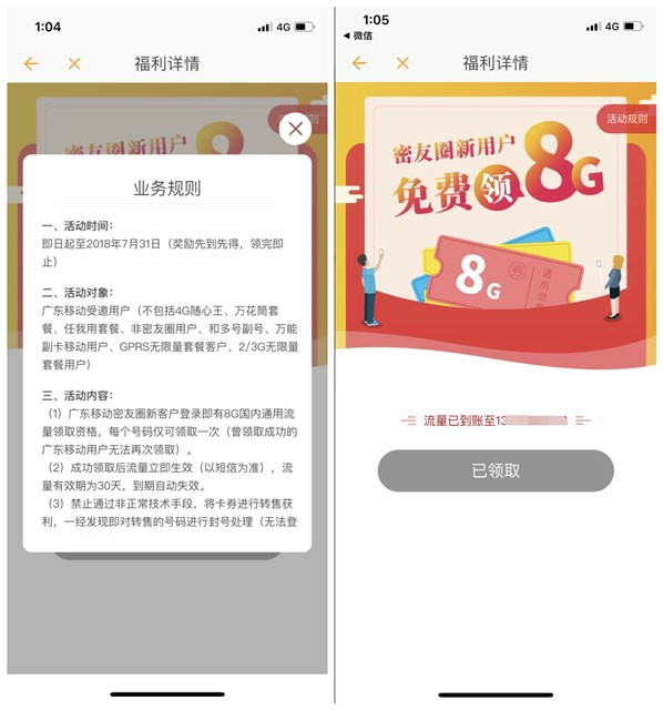广东移动密友圈APP用户 免费8G国内移动流量 77生活网 4351文章 17评论 2018年7月22日 20:20:07话费流量广东移动密友圈APP用户 免费8G国内移动流量已关闭评论4,5541阅读模式 手机各大应用商城搜索“密友圈APP”下载以后登录,点击 我 - 活动中心 - 新人报道免费领8G,进去以后点击领取,会提示你分享好友那个无视领取以后,退出在进入页面 会发现领取成功了。77生活网的小伙伴们感兴趣的来试试。 下面是小编测到领取图 活动地址:密友圈APP 历史上的今天7 月222020和平精英电音盛典当DJ抽现金红包活动 秒到账2020邮政储蓄用户开通电子账户免费领取45天优酷会员活动2019腾讯游戏《全民枪王》10月11日停运公告 再见枪王2019微信小程序猜字送现金游戏活动 简单得微信现金红包2017新用户注册奥莱购送50元现金券 8元购买T恤等亲测下单2017微信下载触电新闻客户端次日领取1元微信红包奖励 实测秒推 1 https://www.77shw.com/liul/10707.html 复制链接 复制链接 我的微信 微信扫一扫 我的微信 你领一次红包多一份动力 支付宝搜索7503319领取 我的公众号