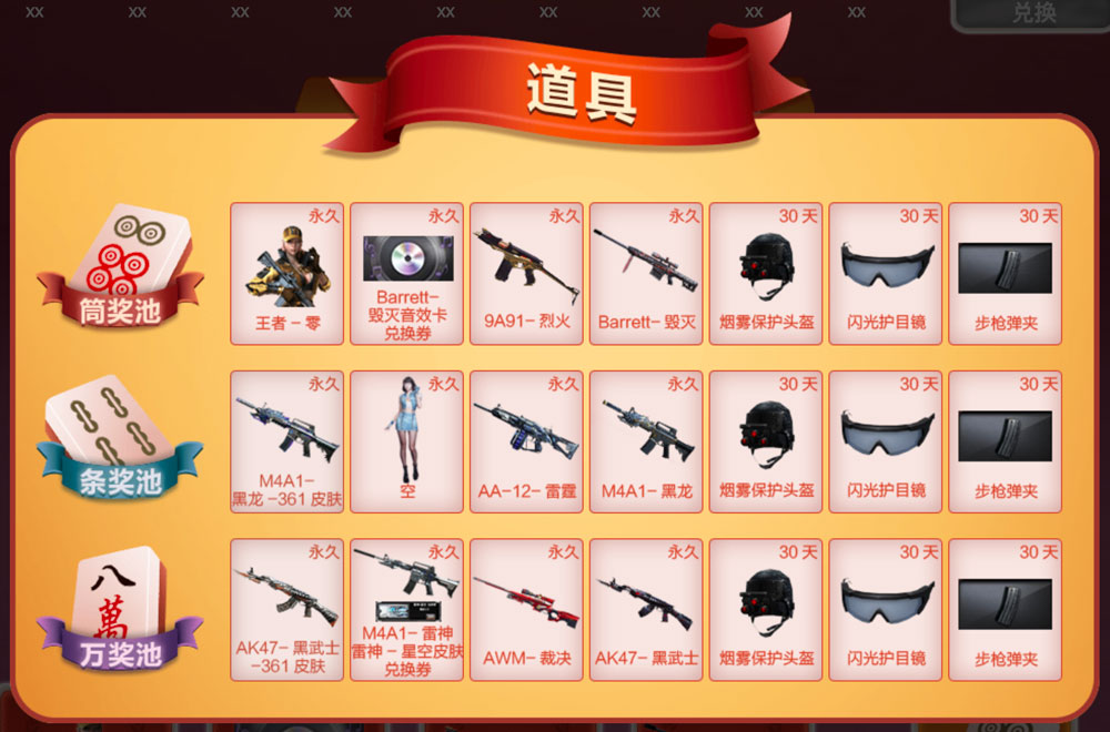 1,选择奖池,摸牌抽奖,获得道具奖励+已选类型的随机麻将牌: